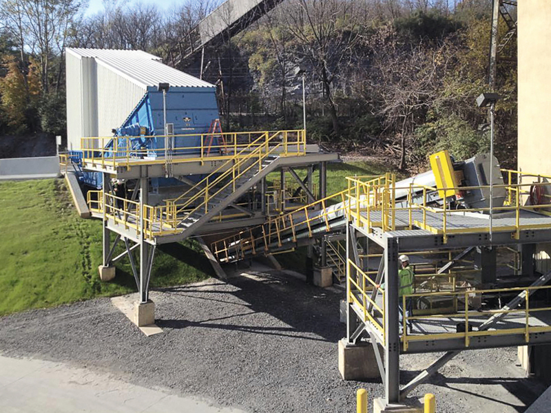 To the Lafarge cement mill at Whitehall in Pennsylvania/USA (Fig. 3), Aumund supplied one Samson® feeder. In conjunction with a weigh feeder and a transfer conveyor belt, it feeds lime mud directly onto the finish mill belt. The material is fed into the Samson® by both, rear tipping truck and front end loader.