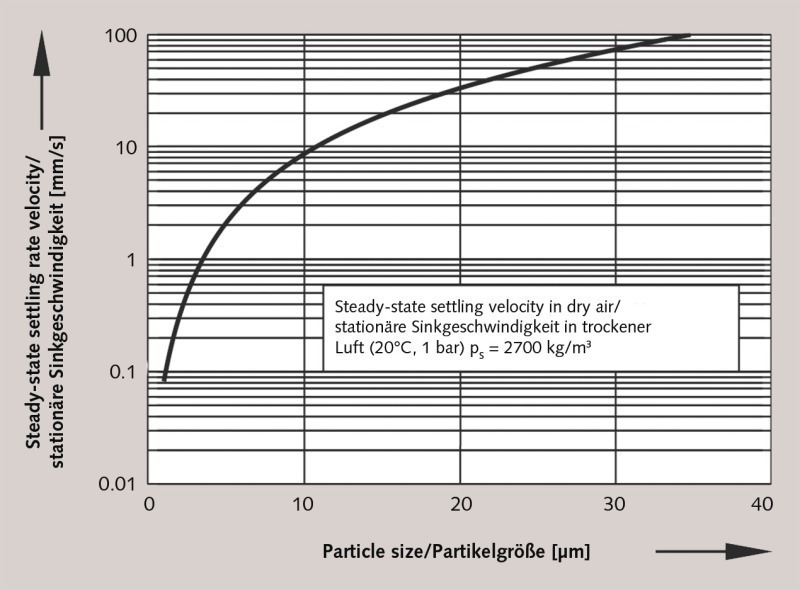 Such effects already become significant for particle sizes of 50 to 100 µm and are particularly pronounced for particles in the sub-10 µm range (Fig. 2). This means that very small particles can move only slowly relative to the suffounding gas and are therefore easily influenced by the flow of the surrounding gas (e.g., air currents).