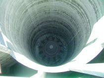 Filling by means of a vertical tube with side openings (Fig. 5b: filling tube). This way, the bulk solid stream stays together and may even be slowed down as it emerges from the pipe, but a sloped heap will still result, and fine particles will still become entrained in the upward flow of air.