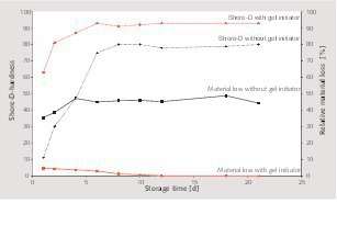 Coat formation (solidification while forming a technically more usable shore D hardness)