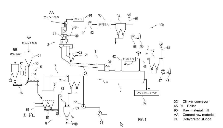 (57) This cement manufacturing system comprises: a suspension pre-heater for pre-heating a cement raw material; a calcining furnace for calcining the pre-heated cement raw material; and a firing furnace for firing the calcined cement raw material. In the cement manufacturing system, a granular material containing dried sludge is loaded into a region of the suspension pre-heater having a temperature of at least 600 °C and less than 800 °C, and the dried sludge is used as a cement raw material and fuel.
