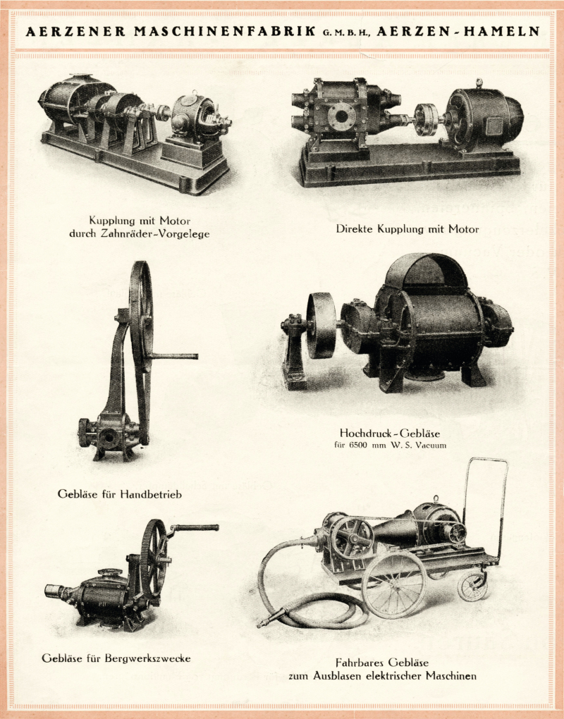 How to become a market leader and top of the class in the technology sector? Klaus-Hasso Heller, CEO, leading the family company Aerzen in the fourth generation has a clear statement: “Only competence and experience are not enough, it also requires a fair amount of luck. Our history differs from others, as even during crises, we have taken the advantage to orientate anew. In 2010, Aerzener Maschinenfabrik was entered for the first time in the “Lexicon of Global Market Leaders” – provisional highlight of a company career that had not necessarily been planned, but is also no coincidence. There have been early affinities for the medium air. In the middle of the 19th century: coking plants, iron foundries and forges require compressed air in large, industrial quantities which could not be handled by the common bellows anymore that were used back then (Fig. 4).