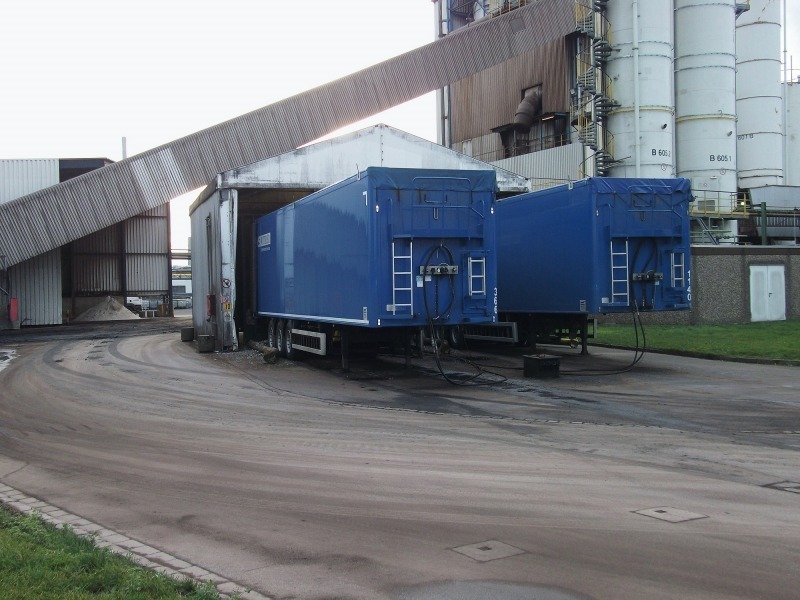 This means that the moving-floor trailer delivering new SRF can be swapped upon arrival for the empty trailer. The “incoming” trailer then remains at the cement plant’s external hydraulic installation, acting as a mobile storage unit, and discharges its approx. 90 m3 (around 20 tonnes) of SRF hydraulically, via the movement of the trailer floor.