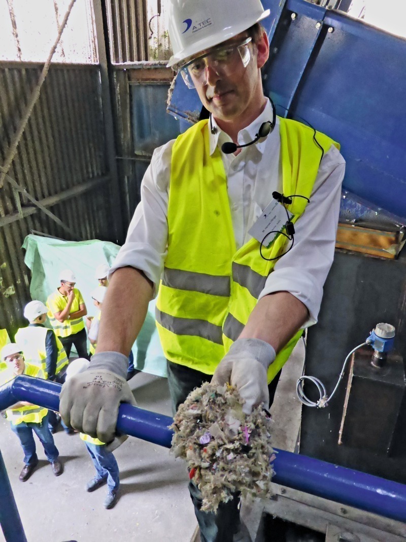 After a coach trip of some three hours, the afternoon excursion reached the Wietersdorf cement plant. This plant has made several large investments in recent years, and is working on two important projects. The first, conducted in cooperation with A TEC, is for the development of an AF-processing system which will permit AF-rates of above 90 % (from RDF alone). The project includes development of the A TEC “Rocket Mill”, which supplies pre-dried RDF with a high surface area, and the development of a new main burner - the A TEC GRECO Flexiflame - to optimise injection of RDF into the rotary kiln. Again cooperating with A TEC and Scheuch, the plant has also developed the eXmercury system, aimed at reducing mercury emissions by up to 80 %. The participants had the opportunity during the visit to obtain a detailed impression of both the Rocket Mill, the Flexiflame burner and the eXmercury system, before embarking on the return journey to Vienna.