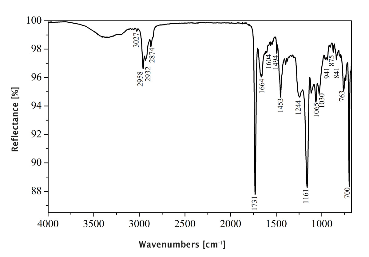 In contrast to the control sample, new vibration peaks appeared in the samples containing SA. These were the vibration peaks of the C-H bond in -CH3 (around 2933 cm-1 and 2964 cm-1), the C-H bond in -CH2 (around 2870 cm-1) and the C=O group (around 1730 cm-1).