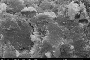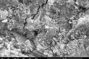 SEM was used to characterize the surface appearance of the hydrates, as shown in Figure 10, so that the morphology of the hydration products could be observed more intuitively.