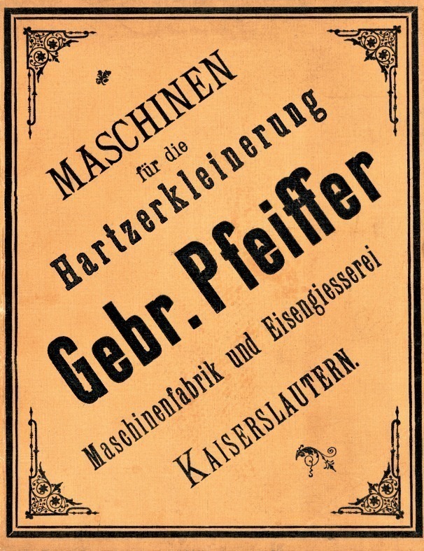 Gebr. Pfeiffer was founded in 1864 as a small machine factory in Kaiserslautern/Germany. Today, it is a globally active company with subsidiaries in India, in the United States and China and about 500 employees worldwide. In the founding years steam engines, mills for food production and malting equipment were the main products of the company, but the focus very soon turned to machines and plants for the basic materials industry as we learn from an exhibition catalog “Machines for Hard Comminution” published in 1892 (Fig. 1).
