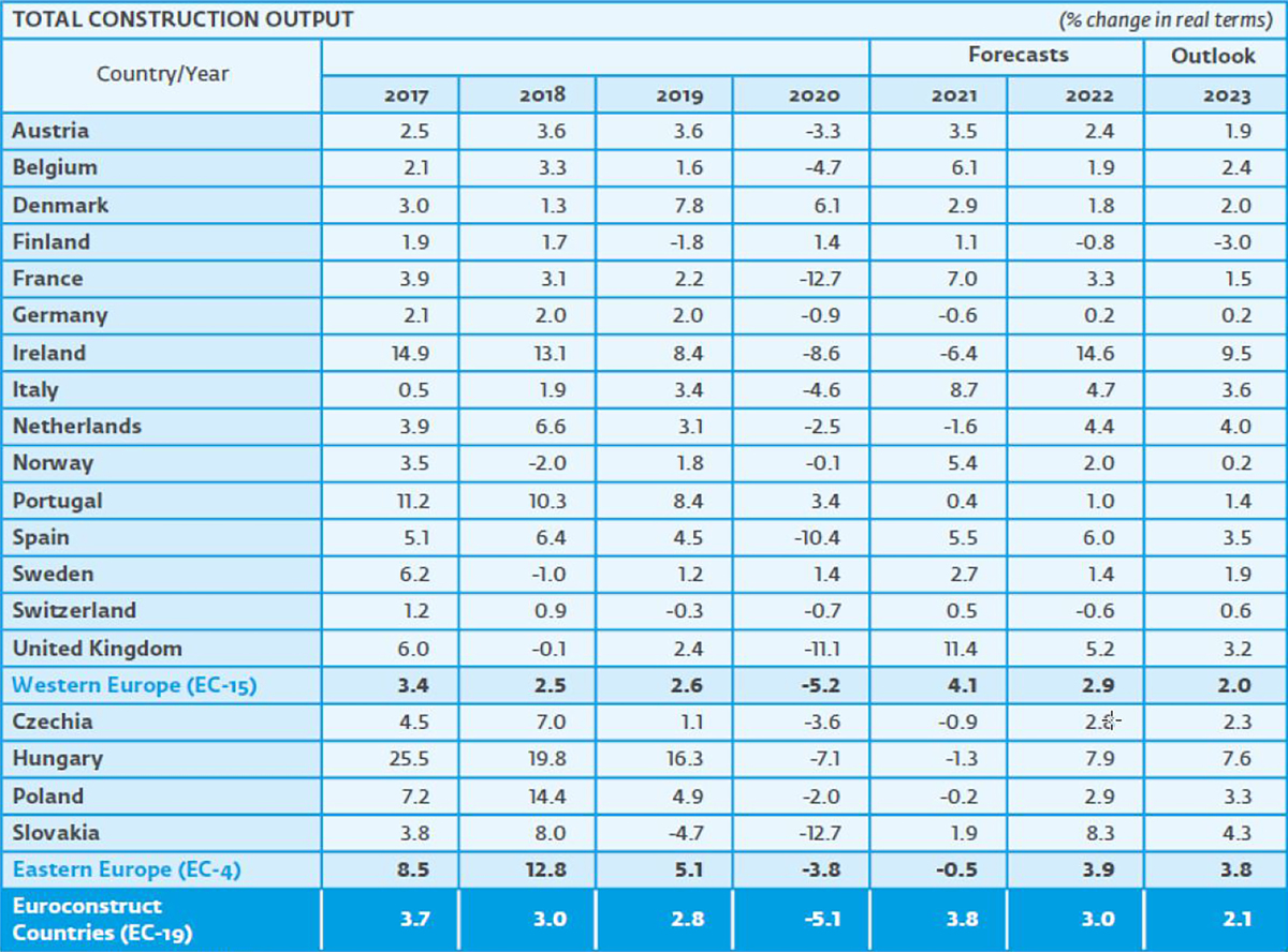 Strong rebound in European construction in 2021