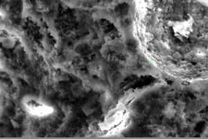 Analysis of the microrelief of the original hardened GCPP (Figure 1 – A, B) shows its stepped structure formed by flaky particles; needle crystals in the areas close to cracks can be observed. The final composition of samples at stated points shows the existence of small needle-like ettringite inclusions that occupy less than 0.2 % of the space under observation.