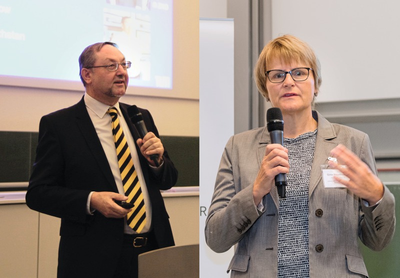 On the second day, the focus was on chemical admixtures for concrete and mortar. This subject was opened by Prof. Xiang-Ming Kong from Tsinghua University in Beijing with a talk on “Effect of colloidal polymers on the phase development of hydrating cement pastes”. There, he presented the fact that for the interaction of latex with cement their surface charge (charge type and density) presents the critical factor. His speech was followed by that from Prof. van Balen from KU Leuven/Belgium with a talk on “Carbonation and durability of construction materials”. Prof. van Balen explained that carbonic anhydrase enzymes which are zinc-based metalloenzymes actually can accelerate the carbonation of Ca(OH)2. Consequently, not only the concentration of CO2 in the atmosphere, but also the biological environment needs to be considered when assessing the kinetics of carbonation. During the morning session, awards were given from GDCh for outstanding Master and Ph.D. theses and from Deutsche Bauchemie e. V. for the best posters exhibited at the conference.