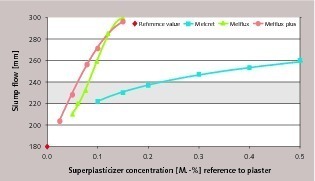 How do superplasticizers influence the hydration of calcium sulfate? Systematic investigations were used to compare the action of polycondensate and polycarboxylate superplasticizers with that of the latest dispersion technology from BASF – a comb polymer with phosphate groups. The addition of the superplasticizers was shown to obstruct not only the nucleation but also the crystal growth.