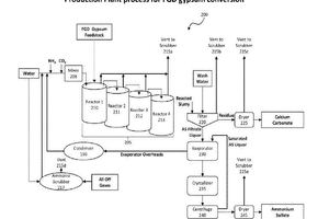 (57) Disclosed herein are systems and methods from processing flue gas desulfurization (FGD) gypsum feedstock and ash feedstocks, either separately or together. FGD gypsum conversion comprises reacting FGD gypsum (calcium sulfate) feedstock or phosphogypsum, in either batch or continuous mode, with ammonium carbonate reagent to produce commercial products comprising ammonium sulfate and calcium carbonate. A process to separate the impurities and convert the calcium carbonate to a pure precipitated calcium carbonate is disclosed. These impurities include a...