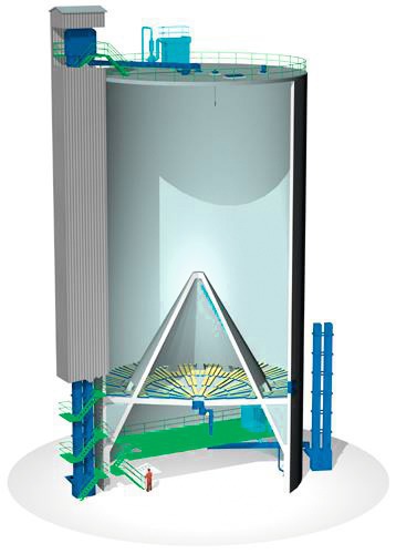 Claudius Peters will deliver a storage silo type EC with a diameter of 18 m and a total volume of 10 700 m³. The main decision to select the silo type EC is the lower height compared to their existing similar capacity silos. Various aeroslides are also part of the scope of supply.