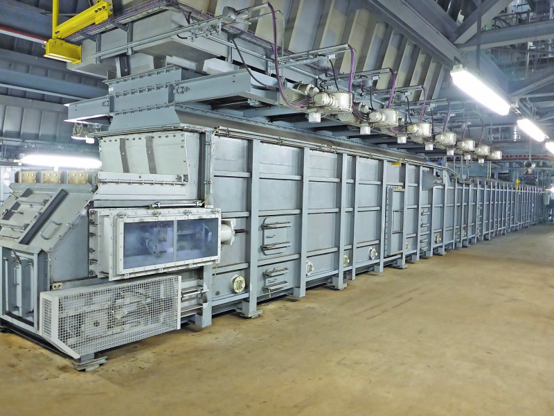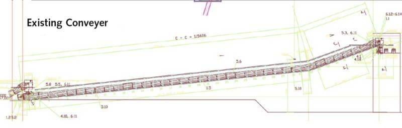 To reach the demanded conveying performance at maximum speed, the conveyor cross section was optimized in a way that it could be inserted into the existing space. Due to the feeding of the coal pulverizers at negative pressure, special attention to an improved sealing of the entire casing was paid.