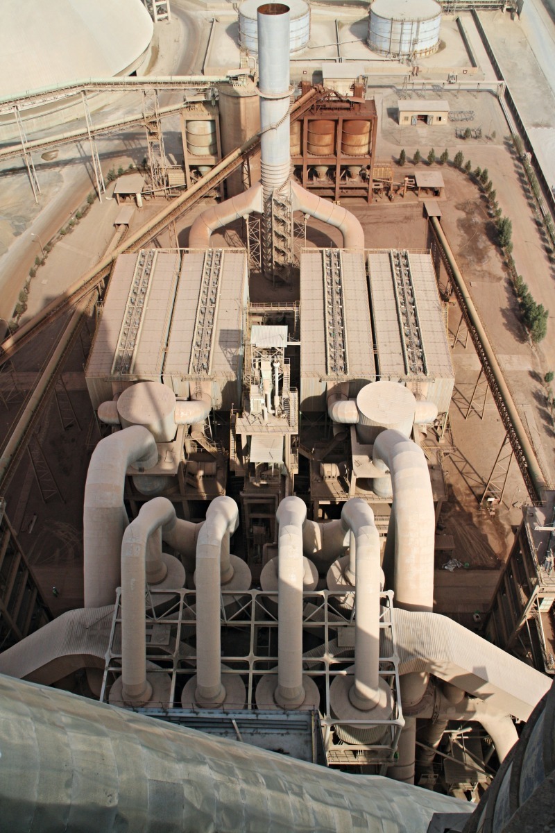 The raw meal is ground in two Loesche mills LM 60.4 (400 t/h each; Fig. 4), and the plant has two cement mills type LM 56.3+3 and one coal mill LM 35.3 also from Loesche (Fig. 5). The plant is equipped with one of the largest pendulum coolers from IKN with a capacity of 10 000 t/d. The maximum capacity of the plant is about 12 000 t/d. Huge bag filters ensure comprehensive dedusting. With the slogan “UCC Goes Green” UCC is one of the first cement producers following green strategies. From dust to noise emissions, each value is taken seriously and should be below the emission limits.