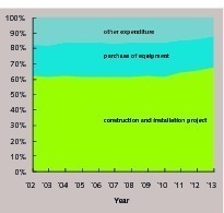 China remains in the process of urbanization and industrialization. In 2010, the proportion of population in towns surpassed 50 % for the first time and reached 52.6 % by the end of 2012. To reach a 70 % rate of urbanization, the new urbanization of the country will take 15-20 years (Fig. 21). According to the composition of fixed assets investment in China, the weight of construction and installation projects has long remained above 60 %. Furthermore, it has increased in recent years reaching 64.9 % in 2012 and is expected to increase to more than 67 % in 2013 (Fig. 22). The weight of the purchase costs of equipment and instruments in fixed assets investment in China has been kept at around 20 % for years, which indicates the investment organic composition is not high and the investment is mainly focused on industry, infrastructure, and real estate. Calculated based on the construction and installation project costs of more than 20 trillion yuan, construction material, including steel and cement, worth more than 8 trillion yuan will be needed annually. It is confirmed that in the future 3-5 years; the need for cement will be kept at a relatively high level. Even if the peak may come, the need for cement will remain at a relatively high level within 10 to 20 years of uncompleted urbanization. Even though it will decrease, and it will be a gradual reduction if controlling well by the industry and the government policy.