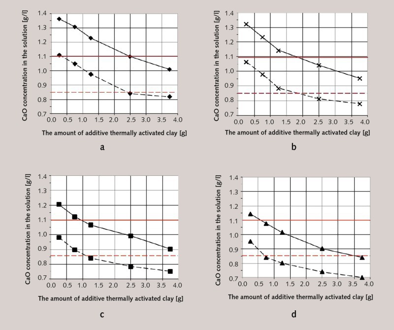 The first stage of this research was conducted according to a technique developed in NRU MGSU [10]: the amount of thermally activated clay additive needed for GCPB (Gypsum Cement Pozzolanic Binder) was determined based on the calcium oxide concentration.