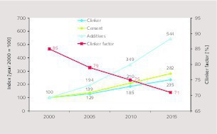 The clinker factor which describes the ratio of clinker used in cement is significantly decreasing globally. In India, for example the clinker factor has decreased from 85 % in 2000 to 71 % in 2015 (Fig. 6). This has several impacts. Not only is the cement capacity growing quicker than the clinker capacity, but also the storage capacities for additives such as fly ash or granulated ground blast furnace slag (GGBFS) are increasing, and the storage capacities for the different types of cement have to be adjusted. In many cement plants and distribution terminals the existing storage facilities can not cover the new demand. Accordingly cement producers are looking for solutions to adequately cover how the new demand can be met. One option, beside new-builds, is to upgrade old unused storage capacities using efficient silo extraction technologies. Another option is to convert large capacity silos into multi-compartment silos.