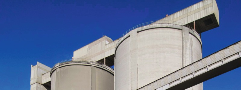 One such project was undertaken by the Hanover cement plant of HeidelbergCement [2] in Germany. The company decided to reduce the clinker content in its cement mainly for ecological reasons to reduce CO2 emissions. The product portfolio of the plant consists of nine different types of cement, including four different Portland cements and five different slag cements with the content of GGBFS varying from 10 % to 70 %. A new multi-chamber silo for storing cements and GGBFS with integral mixing plant for producing slag cements was installed, and existing cement silos and transport routes had to be upgraded. In total the Hanover plant now has a cement storage capacity of about 27 000 t, split up into 22 different silos (Fig. 7) or silo chambers, including two silo chambers for the storage of GGBF slag. Two small silos are allocated to the mix of bypass dust and clinker cooler dust. Two other small silos are used for special products.