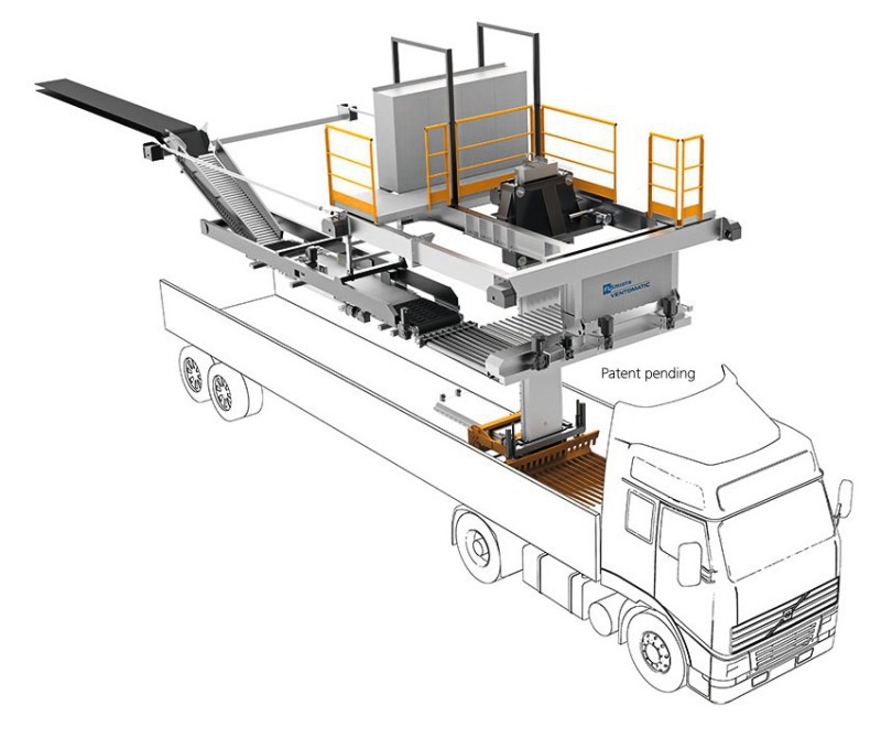 Manual and semi-automatic bag loading on trucks or railcars is being replaced more and more by automatic bag loading. Automatic bag loaders are an economical solution for the simultaneous loading and palletizing of cement. Beumer and Ventomatic are the leading suppliers. Machine capacities include 2400 and 3000 bags/h. In recent years the Beumer Autopac (Fig. 17) has gained a significant market share in the Sub-Sahara region because of its proven design and excellent investment ratio. North Africa, Latin America and most of Asia are still dominated by the Caricamat technology from Ventomatic. Ventomatic has also successfully introduced the Caricatech autoloader (Fig. 18) and FFL concept (Flying-Fork-Lift), while Haver & Boecker achieved success with the high-performance, palletless SpeedRoad-system (Fig. 19), which is for capacities of up to 3000 bags/h with the ability to handle many different truck types, bags, and loading patterns.
