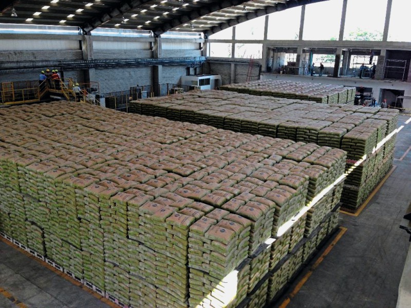 When Cementos Argos decided to install a new kiln line in the Cartagena plant (Fig. 8) in Colombia a decision was also made to build a new dispatching center, adjacent to the dry process plant. The project required a US$ 35 m investment to take advantage of cement distribution from a free trade zone. Excess capacity which cannot be supplied to the local market is exported to the USA and other markets. Up to 1.3 Mta can be distributed in bagged form and up to 1.0 Mta in bulk form. The dispatching center comprises a system for automatically loading trucks with 1800 bags/h. Palletized bags can also be stored in a warehouse (Fig. 9) with 6900 t capacity. Furthermore bulk loading of trucks is possible via 2 steel silos with 2500 t capacity each.
