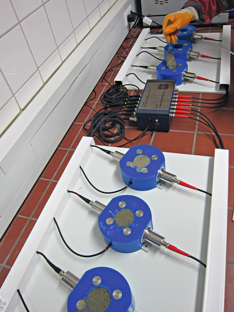 Compared to the Vicat needle test, ultrasonic sound wave velocity measurement is a well-engineered contemporary test method offering a variety of advantages that result in a substantial reduction of development time and costs. The 8-channel ultrasonic measurement system IP-8 allows: