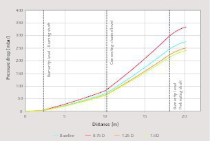 The overall calculated pressure drop is in line with pressure measurements on the kiln. For example, the pressure of the combustion air was 280 mbar when the overall calculated pressure drop of the kiln was 277 mbar.
