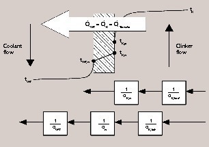 Among the information required for designing a cooler are the clinker data (M˙K, tK,in, tK,out), the heat transfer medium data (tWT,in, tWT,out or M˙WT) and the associated material properties. From the total thermal balance