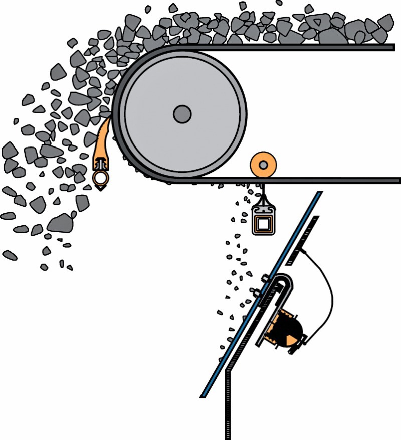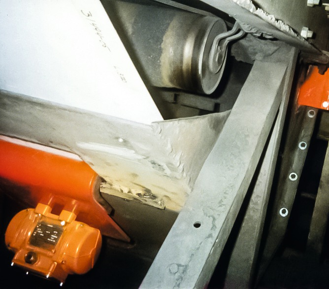 Comprised of three parts, a low-friction polyurethane dribble sheet, a steel mounting bracket and a powerful vibrator, the combination of mechanical disruption and the slick surface prevents material from adhering and feeds it back into the main discharge flow (Fig. 2). When the unit is mounted into the existing chute-work, it often extends the rear configuration closer to the belt, increasing the amount of material captured and further reducing spillage.