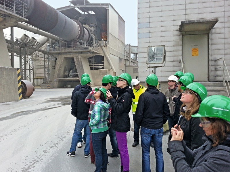 Dr. Hubert Baier firstly introduced the subject of cement with a description of its production process. His address was followed by a lively group-work session, during which the students replicated what they had just learned by diagrammatically illustrating the process sequence of cement production.
