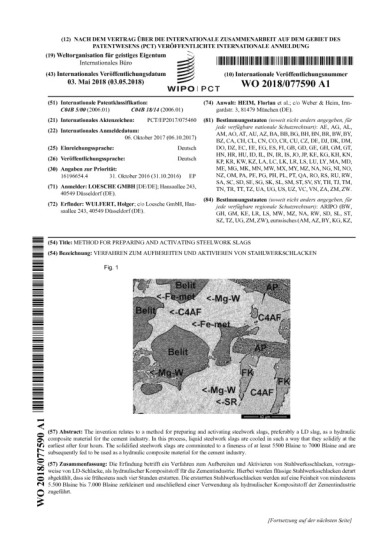 (22) 06.10.2017(43) 03.05.2018(57) The invention relates to a method for preparing and activating steelwork slags, preferably a LD slag, as a hydraulic composite material for the cement industry. In...
