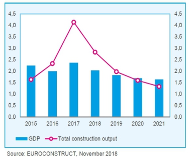 Thanks to a simultaneous construction output growth in the 19 Euroconstruct countries for the first time since years, 2017 recorded a growth peak of 4.1 % (volume). The construction market should keep...